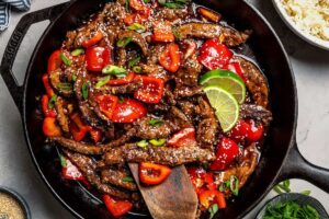 This Beijing beef with bell peppers and onions is tossed in a tangy, savory, spicy stir-fry sauce. I’ll present you...