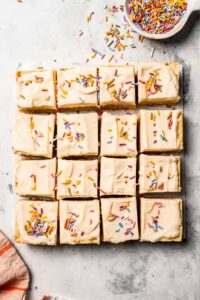 Thick, chewy, and smothered with vanilla frosting, these are the very best sugar cookie bars I’ve tasted! They’re straightforward to...
