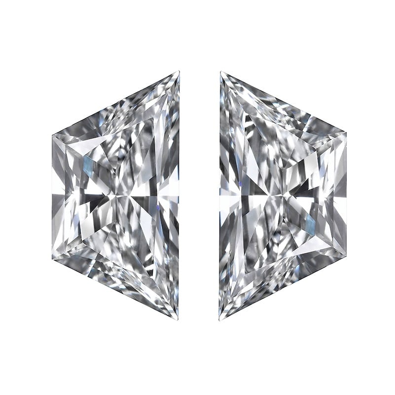 On the flip facet, these stones function lengthy, clear aspects that echo the construction of an emerald or Asscher lower. As an alternative of fiery sparkle, they provide a comfortable, mirror-like flash and a extra architectural look. Step-cut trapezoids are a pure match alongside heart stones with comparable faceting, particularly emerald cuts, Asschers, and radiant cuts.