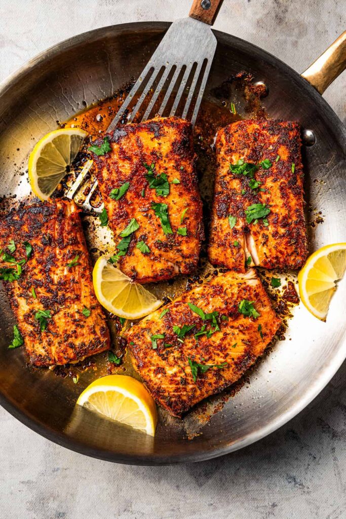 - Olive Oil – Helps the spices adhere to the fish. You should use one other cooking oil or butter in the event you’d like.