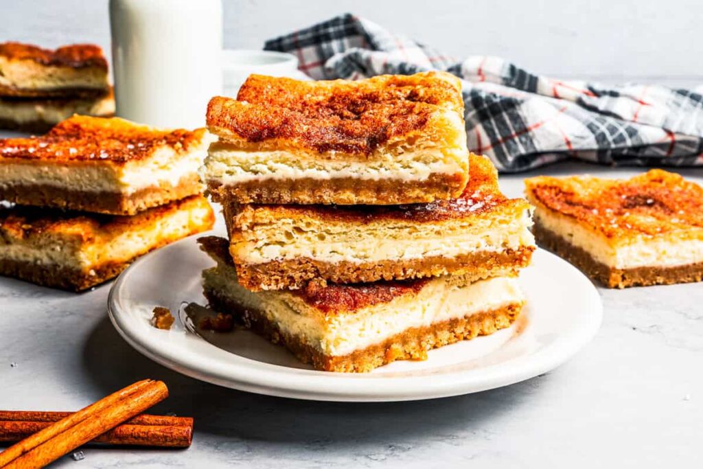 This recipe sandwiches a tangy cream cheese filling between a crumbly cookie crust and flaky pastry topping coated in cinnamon sugar. The substances are simple, and I’ve included notes and potential substitutions under if you happen to want them. Scroll to the recipe card for the complete recipe with measurements and step-by-step directions.