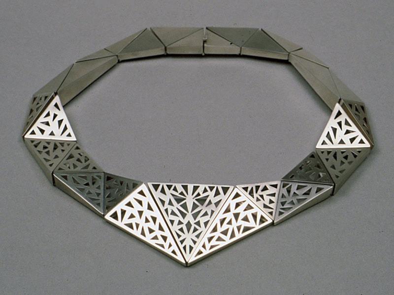 Gentille’s “hyperlink” is critical on this necklace as a result of, due to Seabra, he was a key participant in the way in which up to date jewellery was taught in Portugal.[2] He mentored two workshops at Ar.Co, in 1983 and 1987, and held a solo exhibition on the Calouste Gulbenkian Basis, which had by no means earlier than proven up to date jewellery, in 1983. Instantly afterward, in 1985, Seabra curated Nova Ourivesaria (New Goldsmithing), the primary main group exhibition of works by Ar.Co college students and lecturers on the Museu Nacional de Arte Antiga. The present contained many works ensuing from Gentille’s workshop.