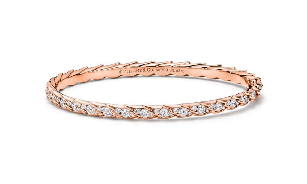 Central to the gathering is a wing motif, described by Tiffany as “sleek, sculptural and symbolic”. Verdeille stated the design group studied birds intimately to replicate the motion of feathers and wings.