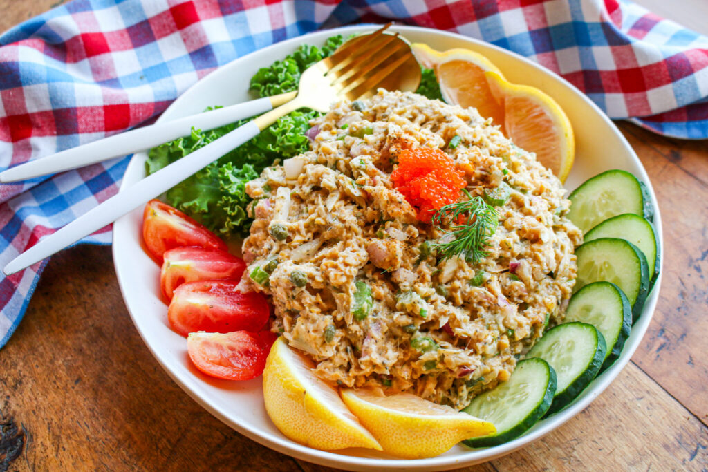 This vegan seafood salad options hearts of palm, chickpeas, seaweed, and a zesty dressing. Mild, hearty, and filled with ocean taste—100% plant-based & gluten-free!